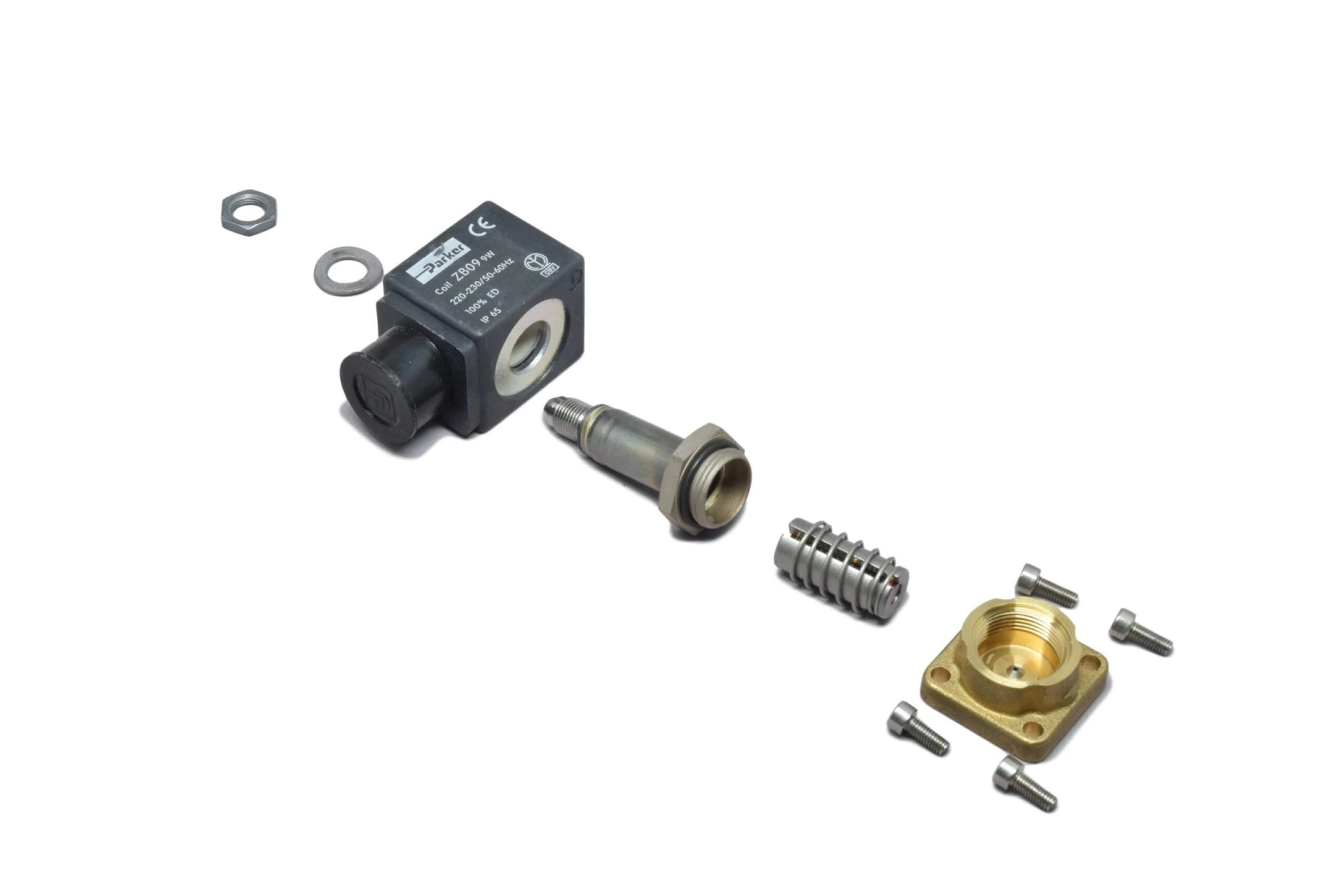 شیر برقی اسپرسوساز به‌وسیله یک میدان مغناطیسی که توسط سیم پیچ ایجاد می‌شود، جریان آب یا بخار را در دستگاه قطع یا وصل می‌کند. زمانی که جریان الکتریسیته از سیم پیچ عبور می‌کند، خاصیت مغناطیسی ایجاد شده باعث می‌شود که شیر باز شود و جریان آب به سمت پرتافیلتر برسد. به محض قطع جریان، خاصیت مغناطیسی از بین می‌رود و شیر بسته می‌شود.